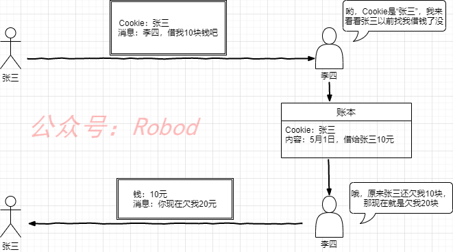 但是有的时候要需要保存状态,比如逛淘宝的时候。那么HTTP怎么实现保持状态功能呢,这就用到了Cookie技术,客户端和服务端通过在HTTP报文中添加一个Cookie字段来获取之前的状态信息。就像下图所示: