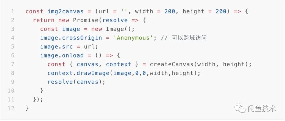 newImage() 的方式生成图片,在 image.onload 阶段使用canvas绘制图片。此时会产生跨域限制,需要通过 crossOrigin='Anonymous' 设置来解决这个问题。