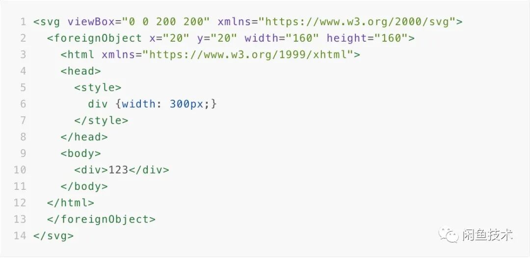 svg 和 xhtml 分别表示解析方式。利用不同的解析方式,实现了svg内部嵌入html的方式。