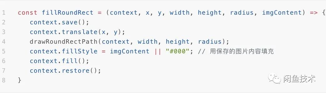 createPattern的方式在canvas上获取图片内容,再利用Path的方式,绘制对应的路线,利用canvas.arc绘制圆弧部分,利用canvas.lineTo绘制直线部分,截取想要的内容,实现圆角矩形。 -