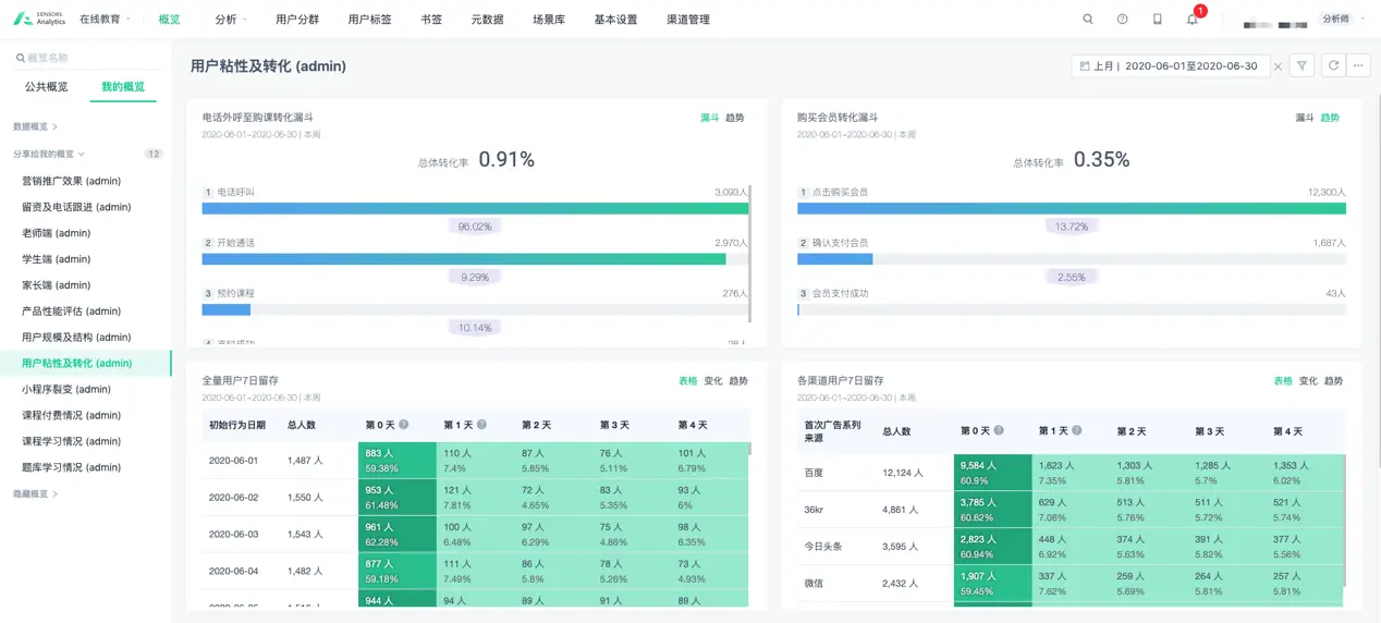 图 1 神策分析在线教育 demo(图中数据为虚拟)