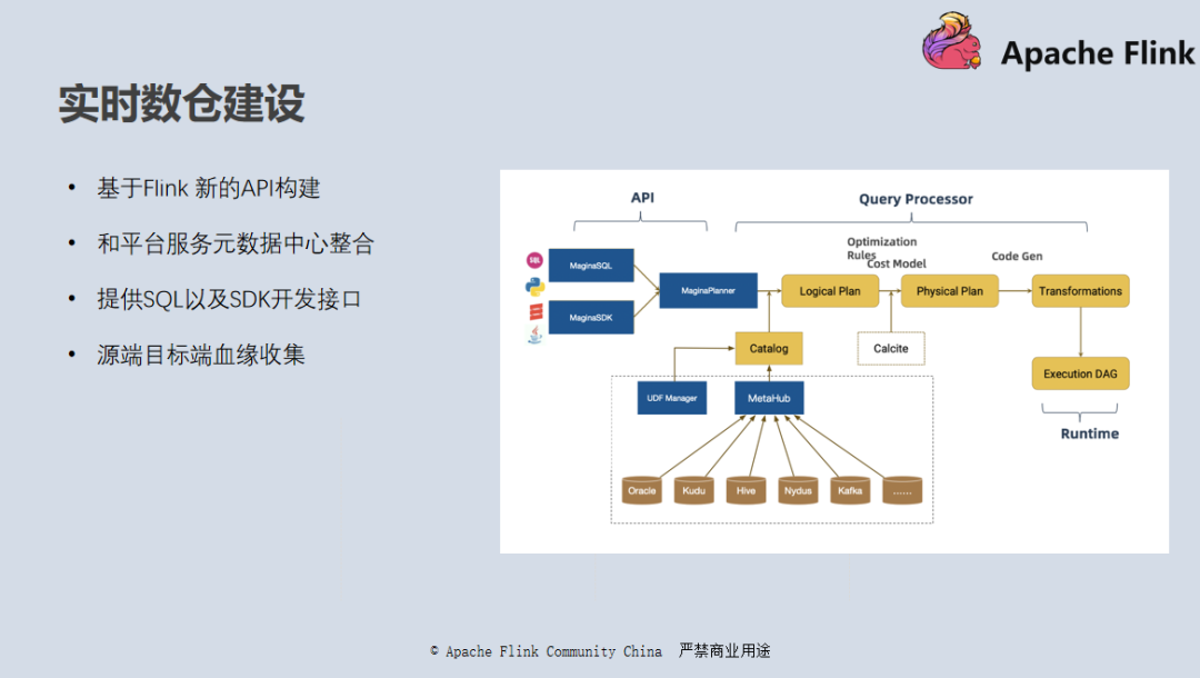 - 使用元数据中心的 API 实现 Flink Catalog API。