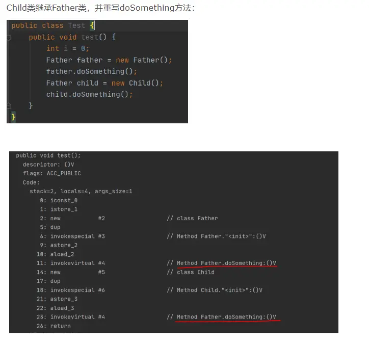 在静态解析时候,看到变量father和child的静态类型都是Father,所以,doSomething方法都解析成Father类里的方法。而child变量的实际类型是Child,应该调用Child类里的doSomething方法,因此方法区里静态解析式不完全正确,要在运行期间栈帧进栈的时候动态连接到真实的类和方法。