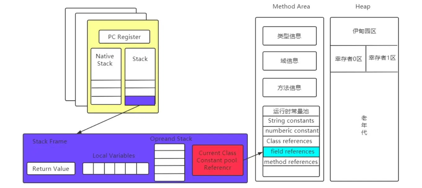 每个栈帧都包含一个指向运行时常量池中该栈帧所属方法的引用,持有这个引用是为了支持方法调用过程中的动态连接。