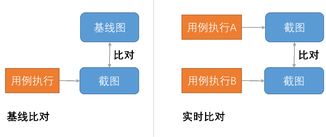 传统的图像比对测试是最新的截图与基线图进行比对,通过与基线图的差异来识别是否存在缺陷,我们称之为基线比对。通过实践,我们发现在有些场景下,基线比对的效果并不理想,比如查询结果页。该页面具有较强的时效性,也许时隔一天,查询的结果就截然不同,自然就对比对的结果造成了很大的干扰。所以我们在Watcher中加入了实时比对。