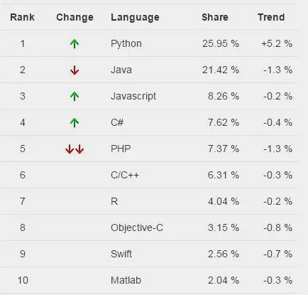 今年1月,Python依旧卫冕PYPL编程榜单,并且与Java的差距拉得更远了一些。以往与Java常呈现你追我赶之势,这一次则是直接相差了4.5%之多!