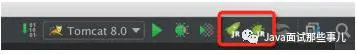 在原来运行项目的按钮边上会多出两个绿色的按钮, 如图, 前面那个是 Run, 后面那个是 Debug
