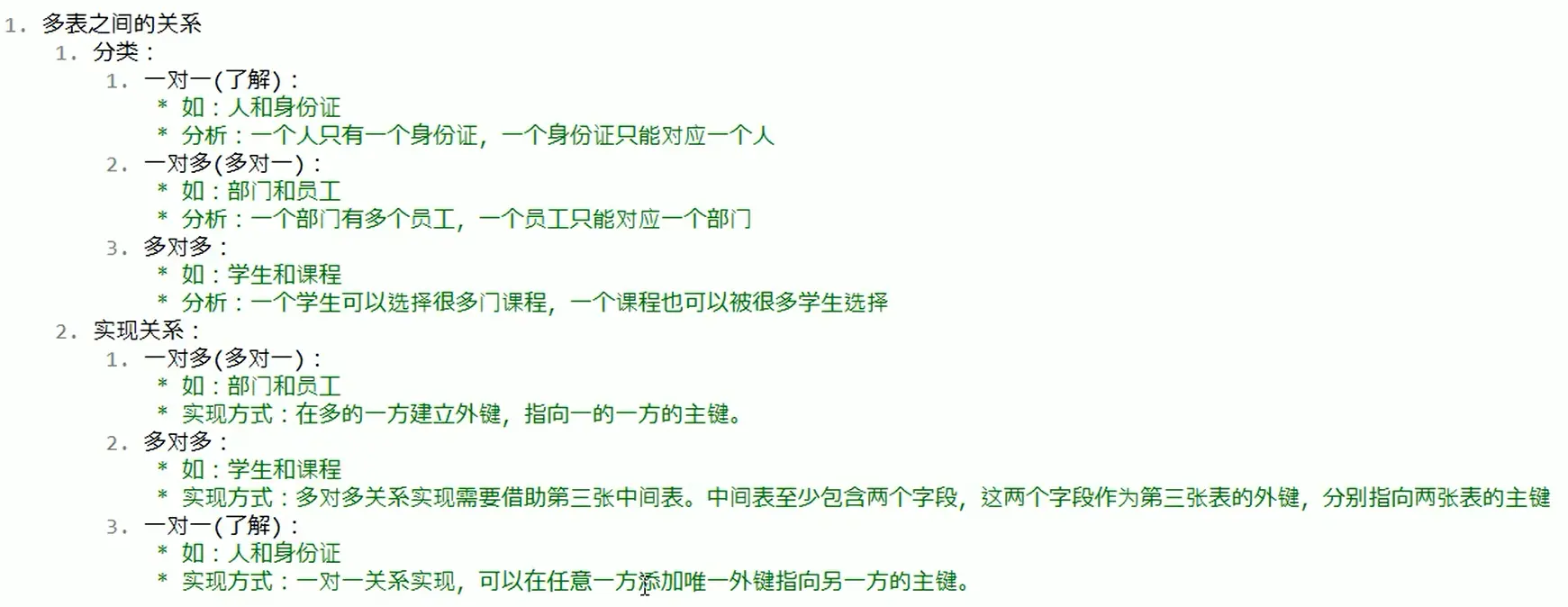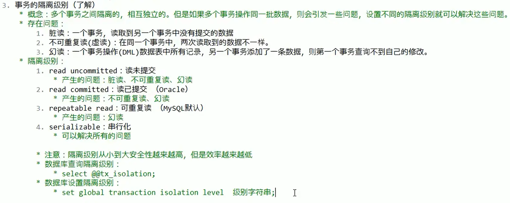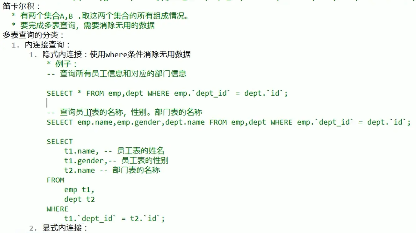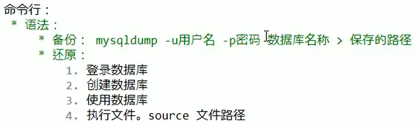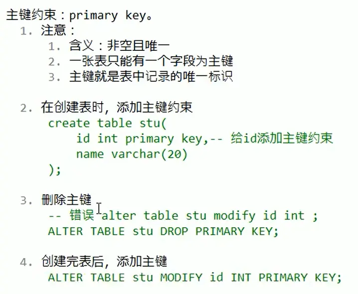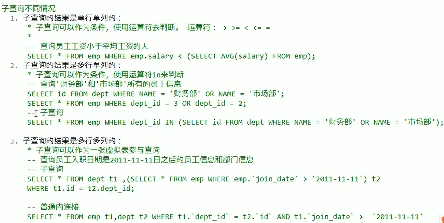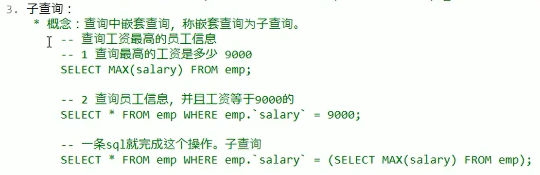 - 单行注释:-- 注释内容(--后有一个空格) 或者 # 注释内容(MySQL特有)
