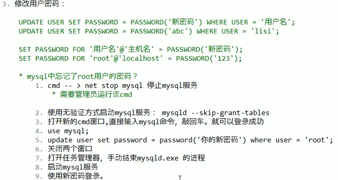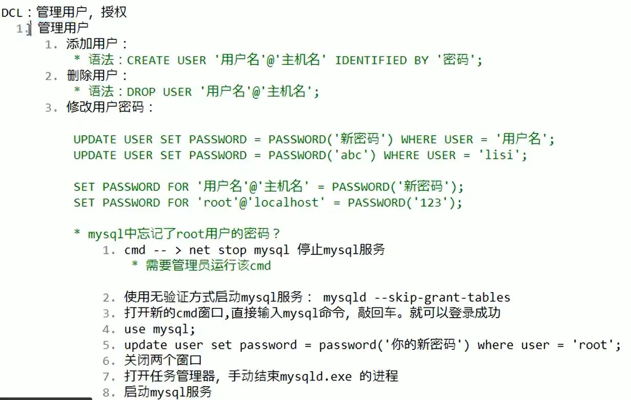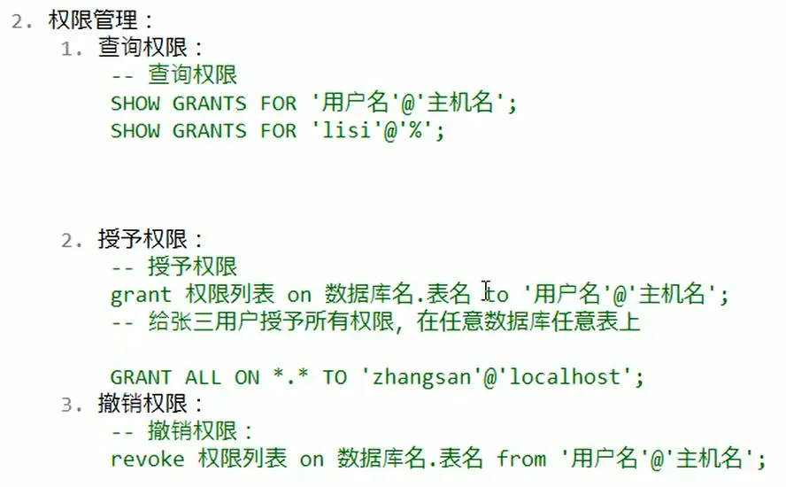 用来定义数据库的访问权限和安全级别,及创建用户。关键字: