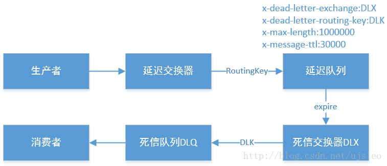 - 通过上述代码就可以实现一个简单的延时队列消息的发布