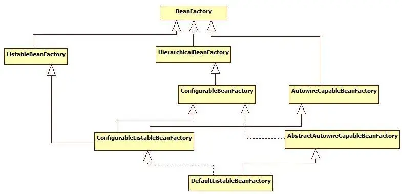 Spring Bean的创建是典型的工厂模式,这一系列的Bean工厂,也即IOC容器为开发者管理对象间的依赖关系提供了很多便利和基础服务,在Spring中有许多的IOC容器的实现供用户选择和使用,其相互关系如下: