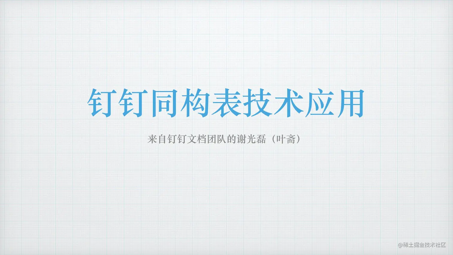 各位线上的同学们,大家好。我是来自钉钉文档团队的叶斋。感谢前端早早聊的举办方,让我有机会在这里和大家分享。我的题目是《钉钉同构表技术应用》。