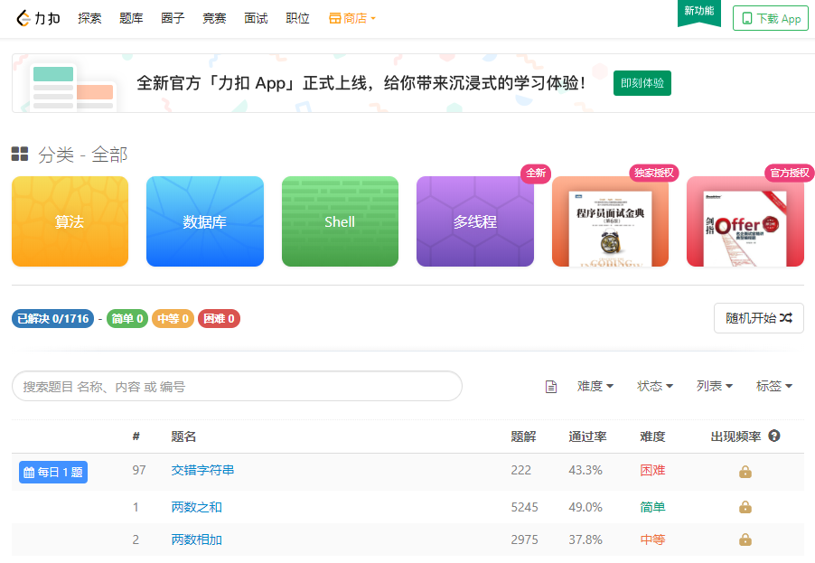 你想备战技术面试?那么缺少不了刷题,好记性不如烂笔头,这个网站提供了超级丰富的题库各大厂面试题。