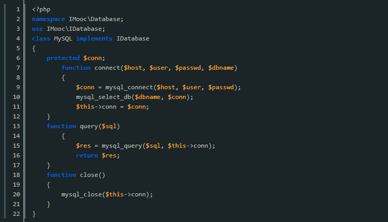 将各种截然不同的函数接口封装成统一的API。 PHP中的数据库操作有MySQL,MySQLi,PDO三种,可以用适配器模式统一成一致,使不同的数据库操作,统一成一样的API。类似的场景还有cache适配器,可以将memcache,redis,file,apc等不同的缓存函数,统一成一致。 首先定义一个接口(有几个方法,以及相应的参数)。然后,有几种不同的情况,就写几个类实现该接口。将完成相似功能的函数,统一成一致的方法。