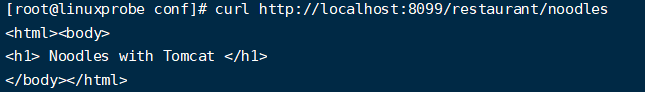 接着我们为面条添加西红柿,http://192.168.142.10:8099/restaurant/noodles?vegetable=tomato ,返回如下页面,页面刷新了,说明访问动态资源成功了。