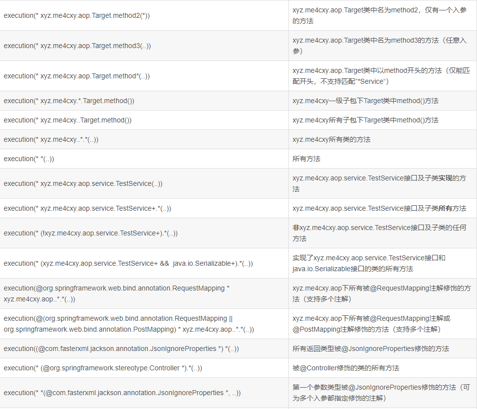 匹配指定类型中的方法执行,只有实现该方法的才会被匹配成功。其中类型表达式规则