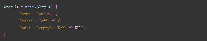 相比switch, match会直接返回值,可以直接赋值给$result了。