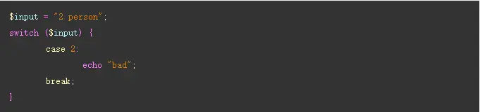 你会发现,bad竟然被输出了,这是因为switch使用了宽松比较(==)。match就不会有这个问题了, 它使用的是严格比较(===),就是值和类型都要完全相等。