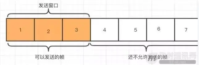 一开始发送窗口在前3帧[1,2,3],则前3帧是可以发送的,后面的则暂时不可以发送,比如[1]帧发送出去后,收到了来自接收方的确认消息,则此时发送窗口才可以往后移1帧,发送窗口来到[2,3,4],同样只有发送窗口内的帧才可以被发送,一次类推。