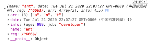这代码实现了一个基础的深拷贝,但是对于一些特殊情况还是没法解决,例如当obj是null,是Date类型,RegExp类型或者是数组。所以更改一下代码,将这些特殊情况弄出来。