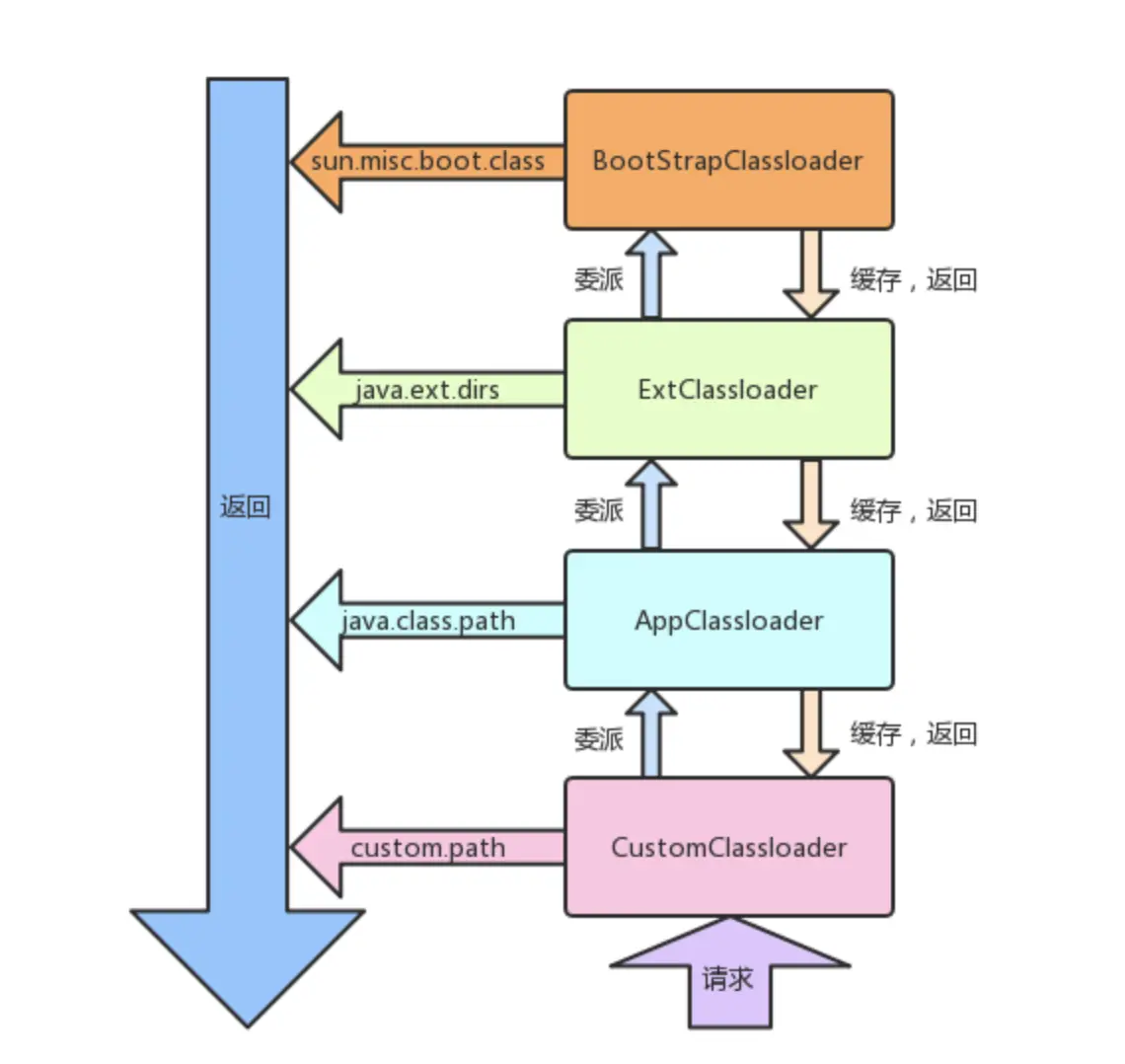 答:java用的是双亲委派机制,这种模型要求除了顶层的BootStrapClassLoader外,其余的类加载器都应当有自己的父类加载器,如果一个类加载器收到了类加载请求,首先会把这个请求委派给父类加载器加载,只有父类加载器无法完成类加载请求时,子类加载器才会尝试自己去加载。