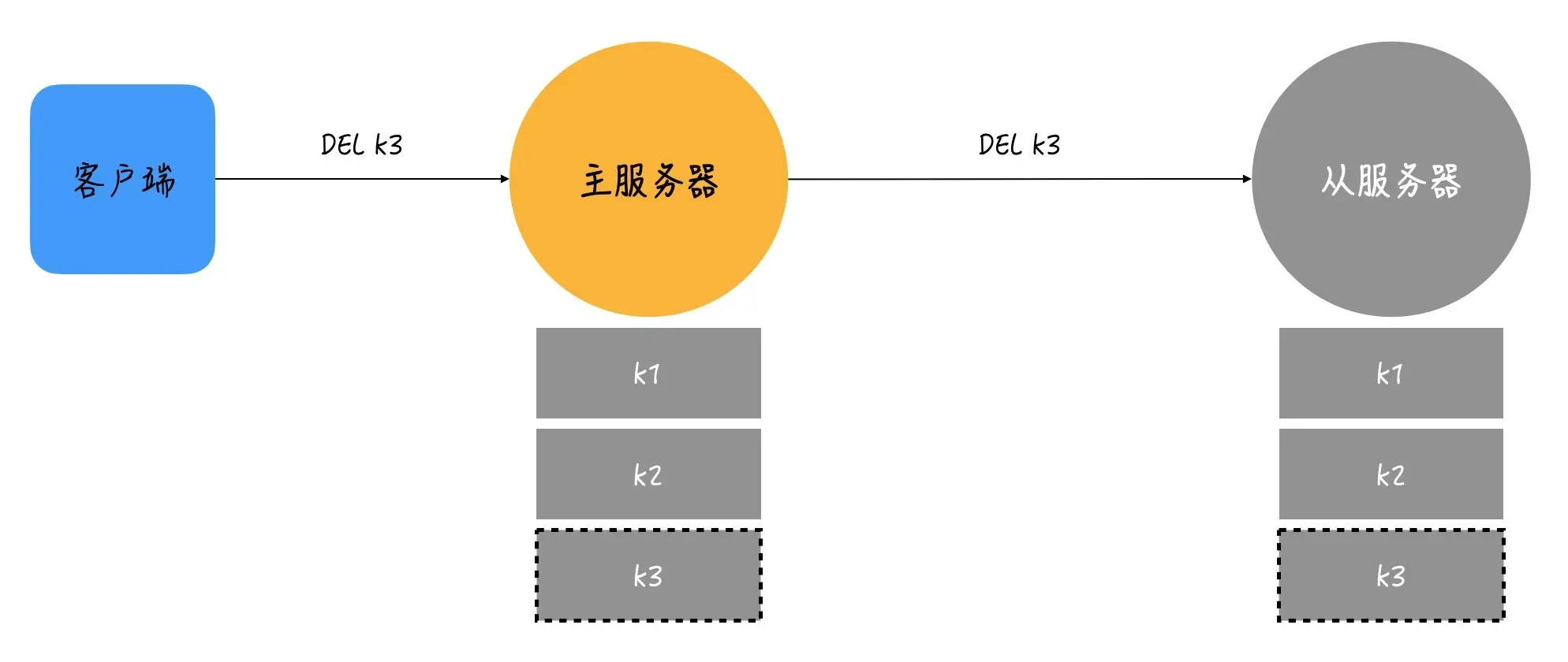 同步操作完成后,主从服务器目前的数据库状态达到一致,但这种状态不是一成不变的,每当主服务器执行客户端发送的写命令时,主从服务器的数据库就不再一致