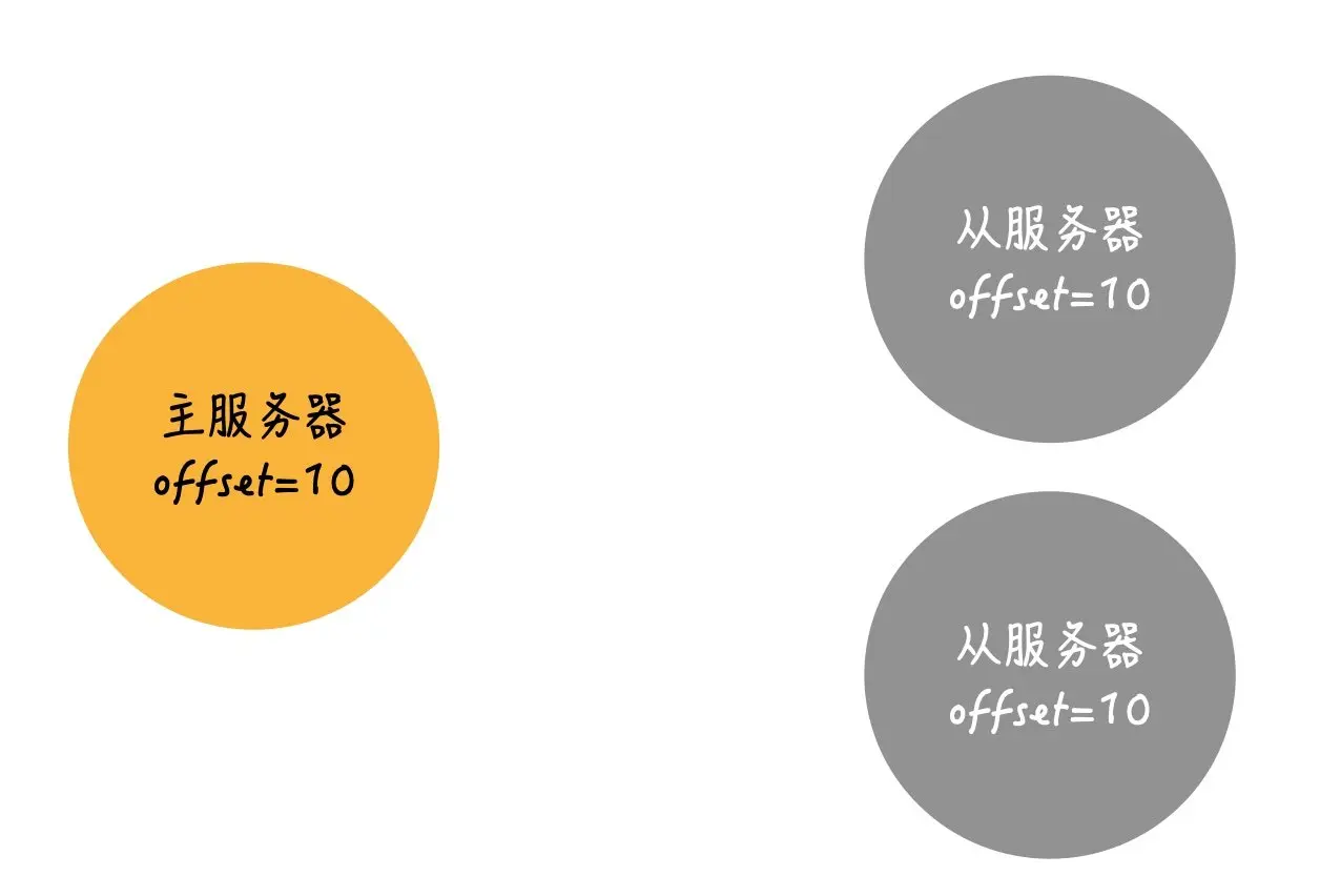 每一个服务器都会分别维护一个复制偏移量: