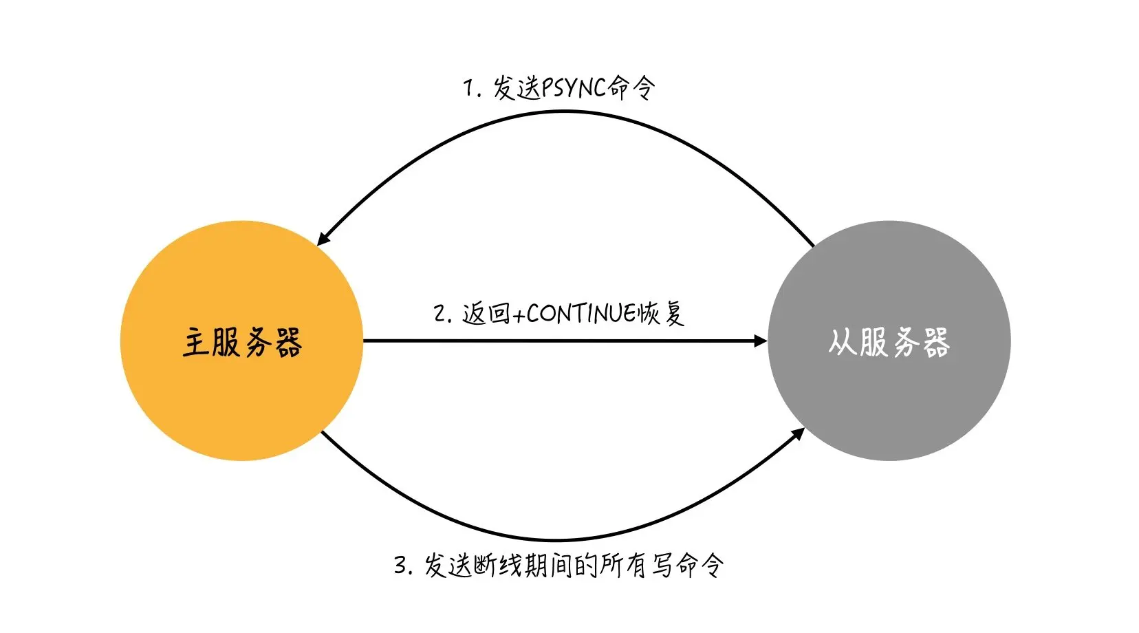 PSYNC ? -1 - 部分重同步:用于断线重连后的重复制,在条件允许的情况下,只需要将断开期间主服务器的写命令发送给从服务器 。