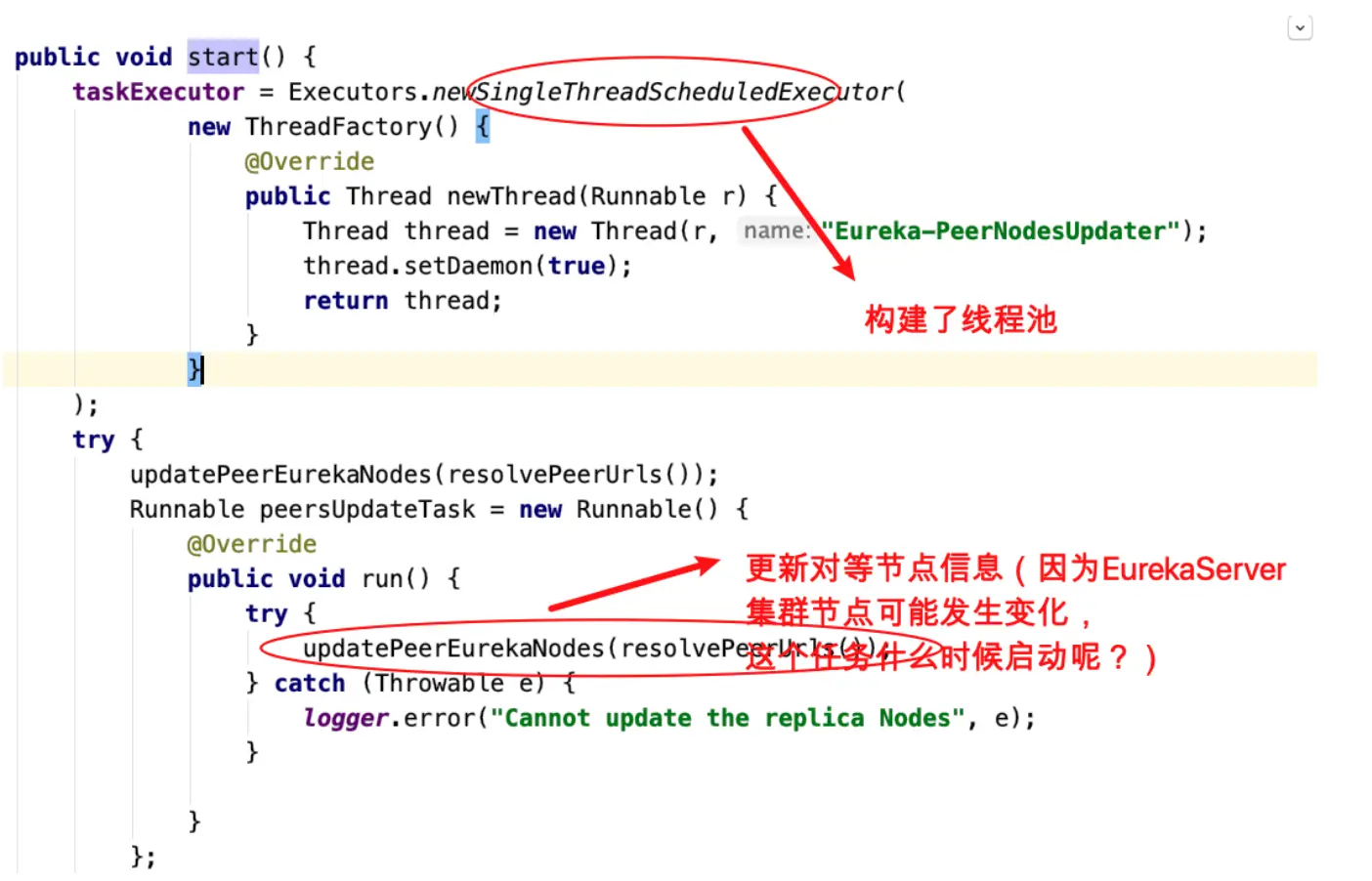 - PeerEurekaNodes构建线程池,更新对等节点信息