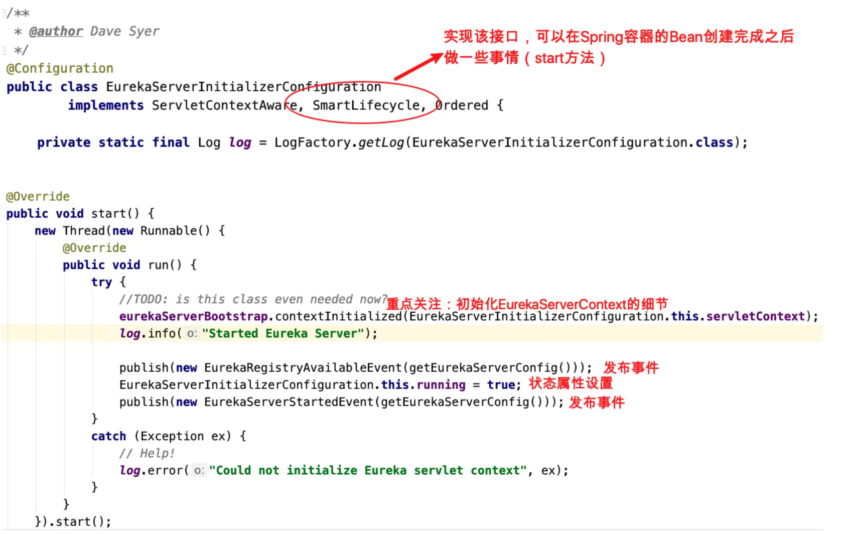 - 重新进入到org.springframework.cloud.netflix.eureka.server.EurekaServerInitializerConfiguration
