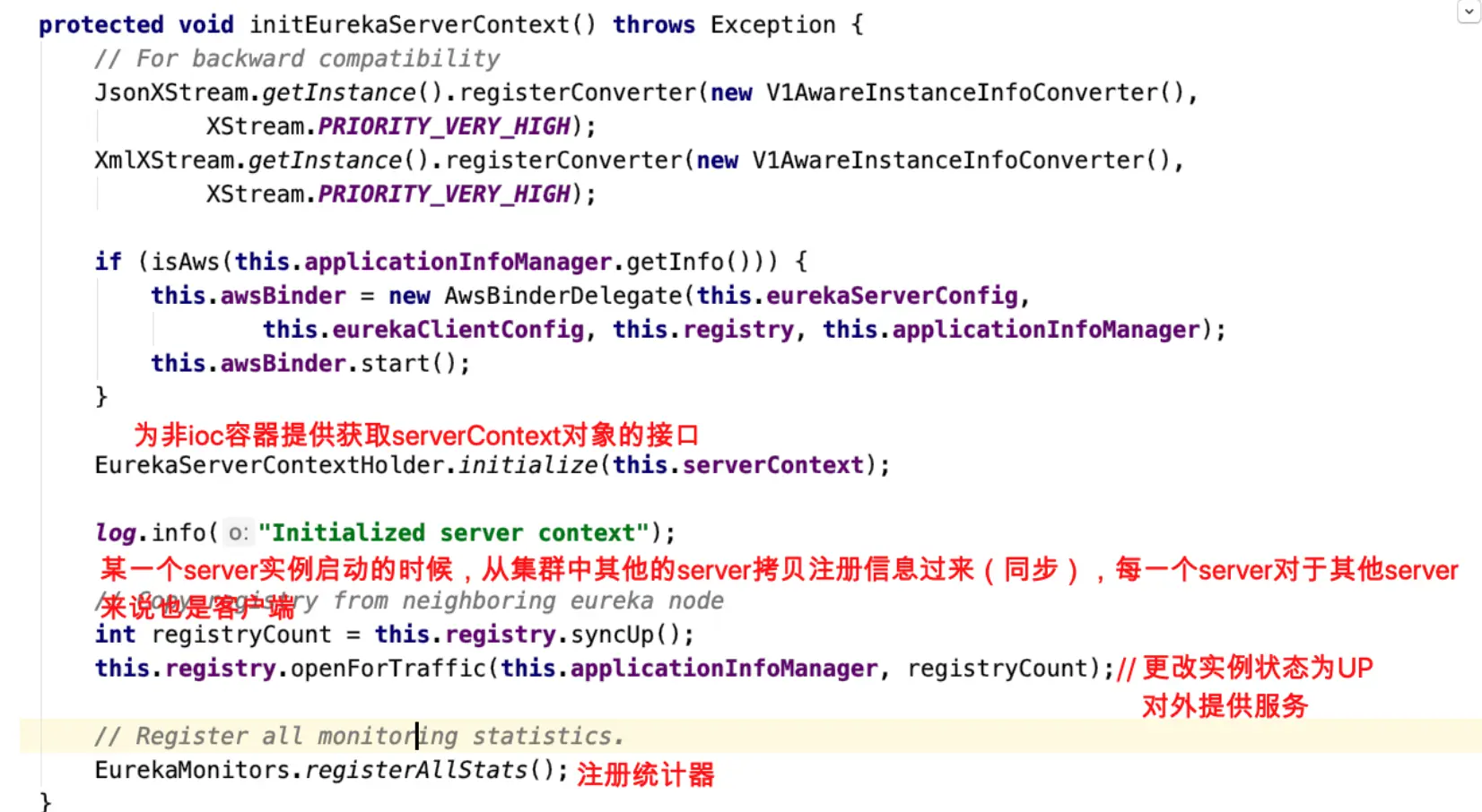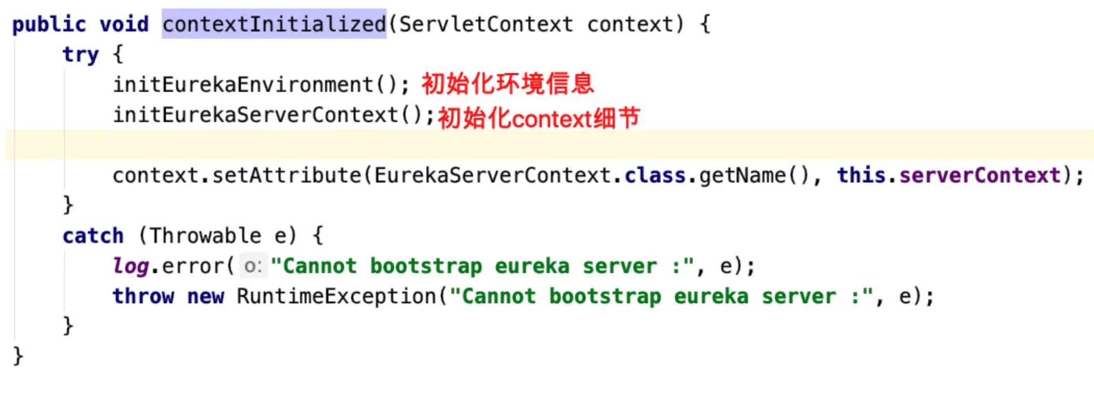 - 进入org.springframework.cloud.netflix.eureka.server.EurekaServerBootstrap#contextInitialized