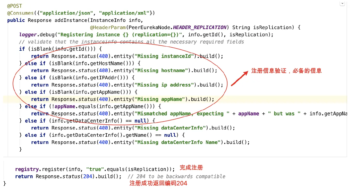 - 来到 com.netflix.eureka.resources.ApplicationResource#addInstance 这里就是使⽤Jersey发布的供EurekaClient调⽤的Restful⻛格服务接⼝(完成服务注册、⼼跳续约等接⼝)