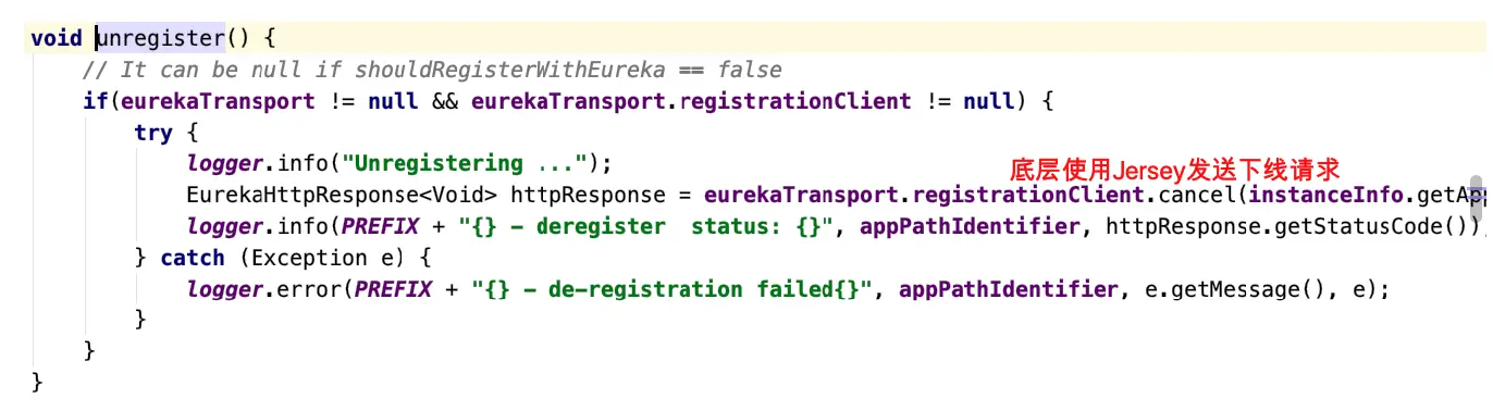 - 当服务正常关闭操作时,会发送服务下线的REST请求给EurekaServer。