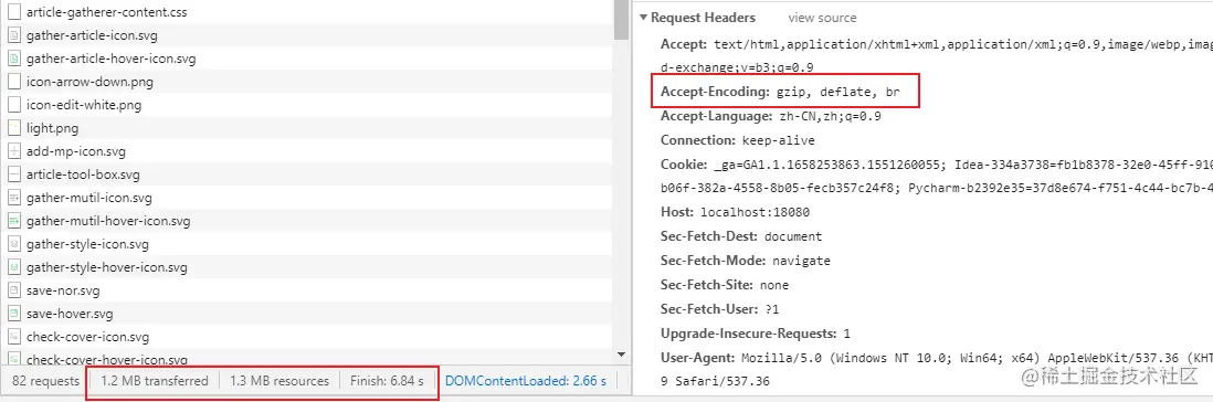 前端开启gzip压缩,使用谷歌浏览器默认开启zip压缩