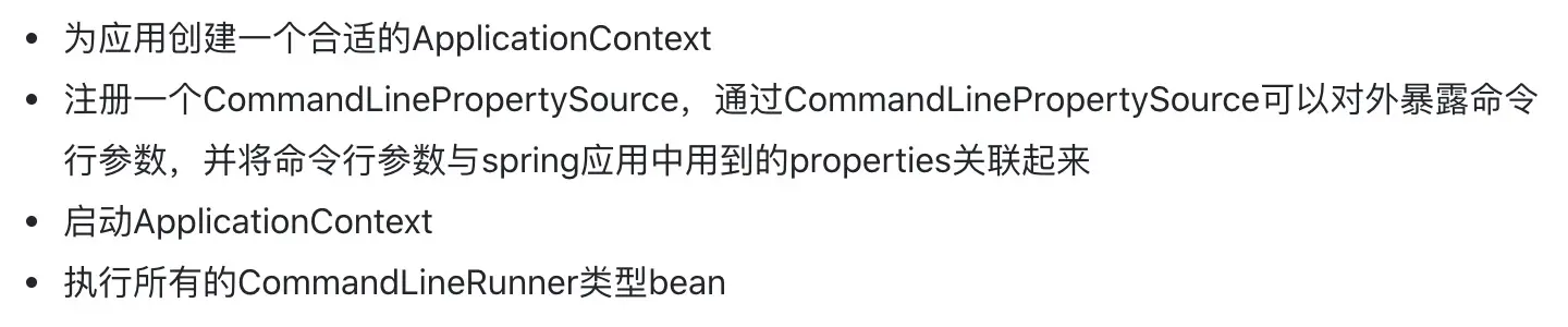 2)SpringApplication是Spring的一个启动类,其中的静态方法run会执行如下操作: