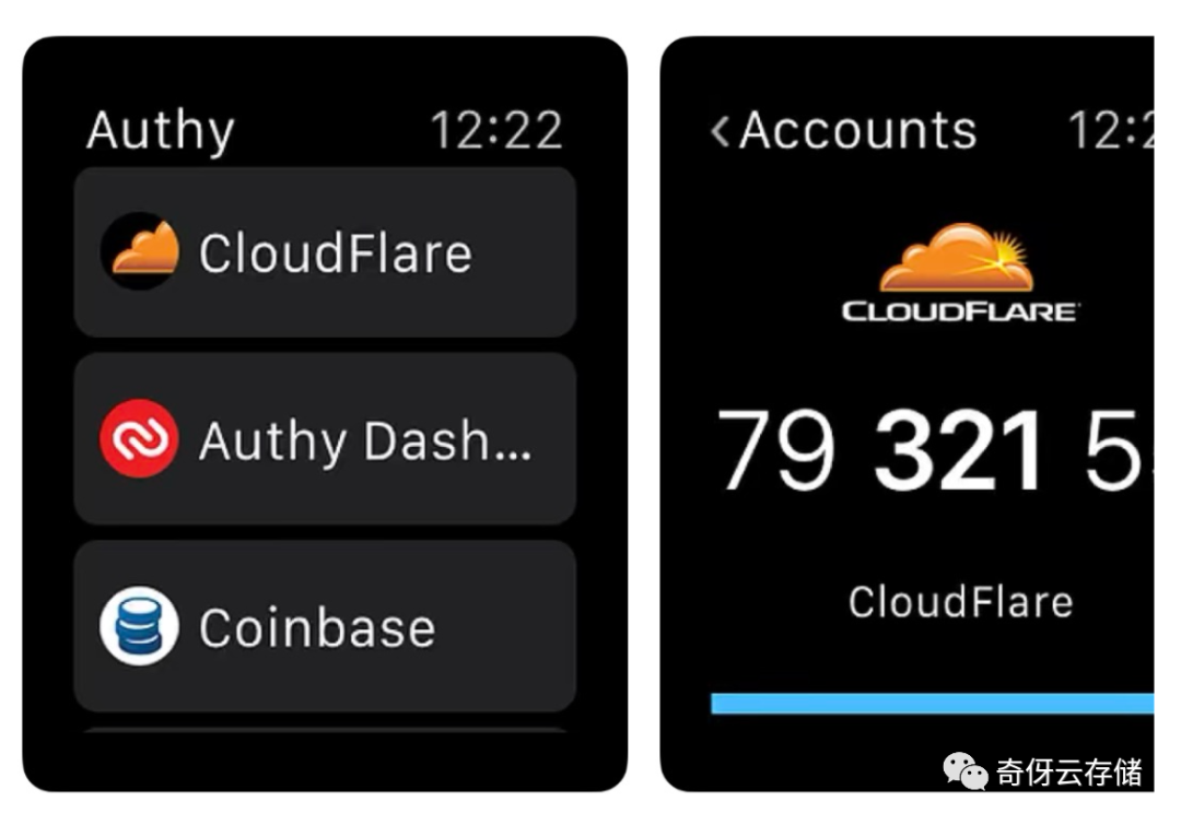 Authy 在智能手表上也能用,这是一个让人更高效的方案。因为不用你再掏出手机了,输入验证码的时候只需要看下手表。比如上班的时候,登录跳板机每次都要输入验证码,Authy 这种方式能给你节约不少时间。