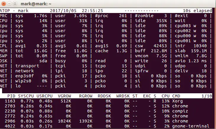 运行方法:sudo atop