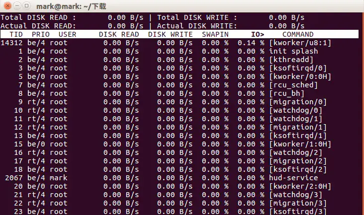 运行方法:sudo iotop