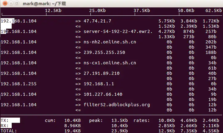 运行方法:sudo iftop
