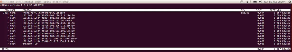 运行方法:sudo Nethogs