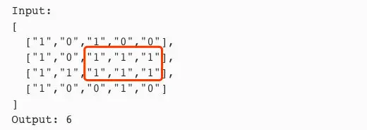 给定一个只包含0和1的数字矩阵,要求在这个矩阵当中找到一个由1组成的最大面积的矩形,返回这个面积。