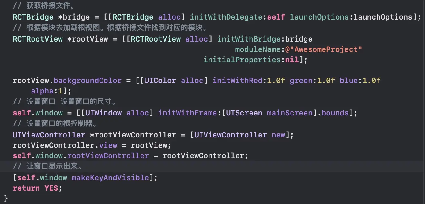 总结:app.js组件汇总文件。最终输出到index.js文件为工程入口文件。 android 和 IOS 通过桥接文件去加载根视图。找到对应的模块。