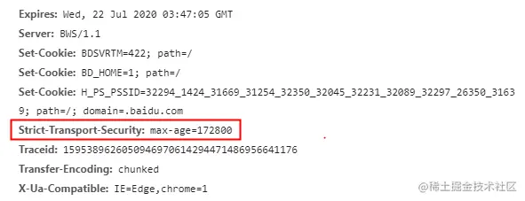 我们看到百度的网站也设置了Strict-Transport-Security。