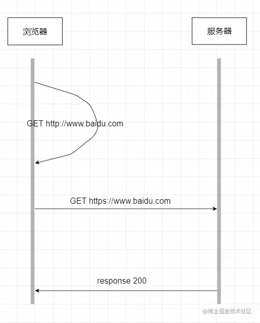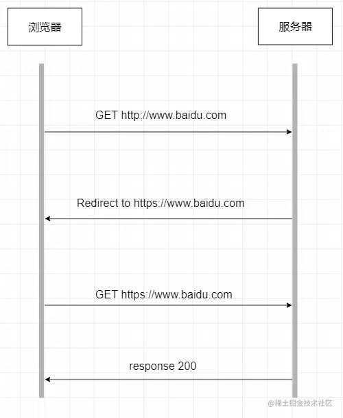 这时候我们并没有告诉浏览器当前请求的网站协议是https,然而我们最终打开的还是 https 协议的百度网站。这是为什么呢?