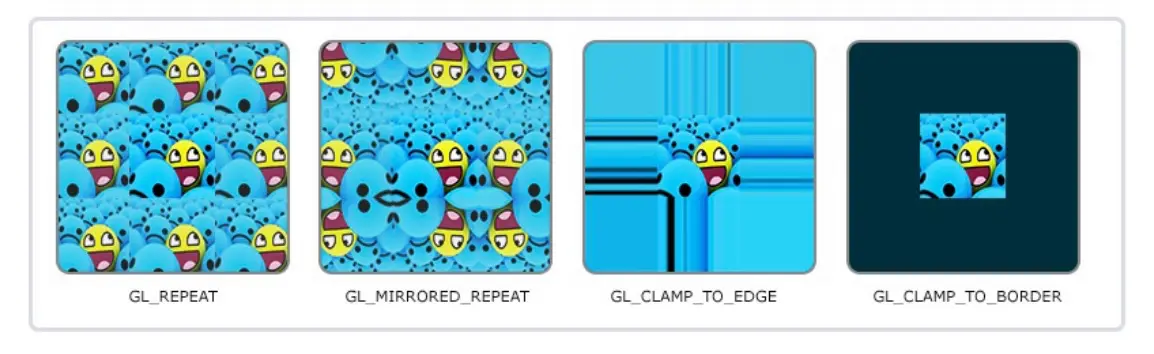 | GL_CLAMP_TO_BORDER | 超出的坐标为用户指定的边缘颜色 |