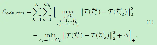 是margin。式1以triplet loss的形式攻击了ranking,将最容易区分的不同ID图像对的距离鼓励变小(容易误判的错误样本,让它更容易误判),而将最容易区分的同一ID图像对的距离鼓励变大(容易识别的正确样本,让它不同容易识别,这就相当于triplet loss的反向操作。