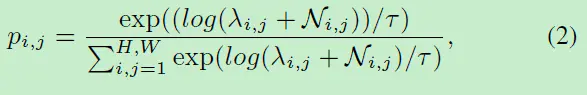 i,j是pixel的索引,H和W是feature map的高和宽,为像素被选择的概率,其被softmax输出