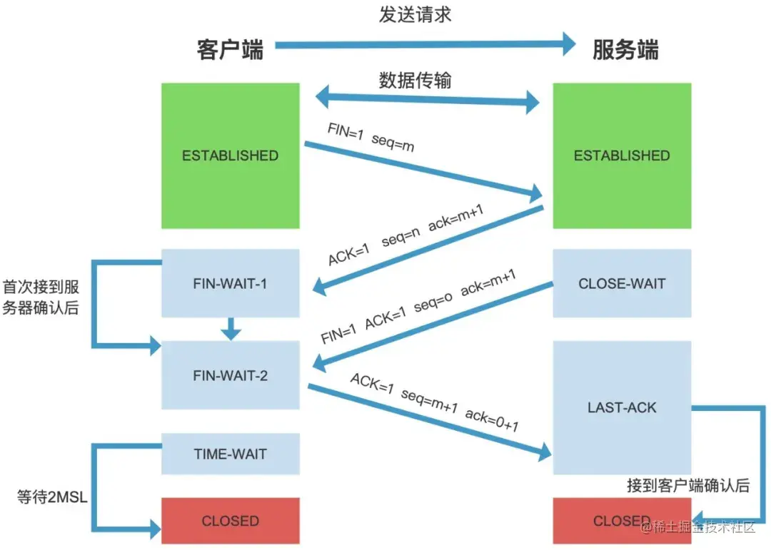 - 第二次挥手,服务器可能还要处理些数据,所以先发送
