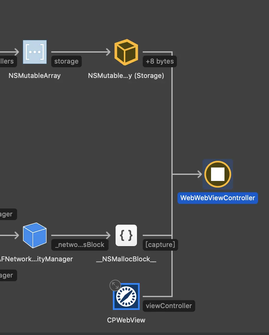 有时候不清楚类中的内存泄露是在哪个方法中泄露,而通过Leaks比较难定位,可以借助Xcode的Memory Graph进行定位