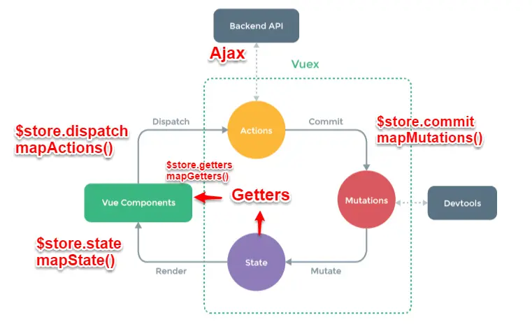 Vuex实现了一个单向数据流,在全局拥有一个State存放数据,当组件要更改State中的数据时,必须通过Mutation进行,Mutation同时提供了订阅者模式供外部插件调用获取State数据的更新。而当所有异步操作(常见于调用后端接口异步获取更新数据)或批量的同步操作需要走Action,但Action也是无法直接修改State的,还是需要通过Mutation来修改State的数据。最后,根据State的变化,渲染到视图上。